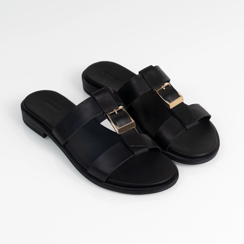 Nyárias viselet a meleg napokra, amikor a kényelem és az elegancia egyaránt fontos. Finom bőr felsőrészét egy ízléses fém dísz teszi különlegessé, mely diszkrét csillogást ad a lépteidnek.