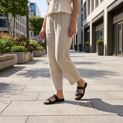 A puha, bőr bevonatú lábágy anatómiai kialakítása garantálja a kényelmet a hosszú nyári napokon, legyen szó városi sétáról vagy tengerparti pihenésről.
