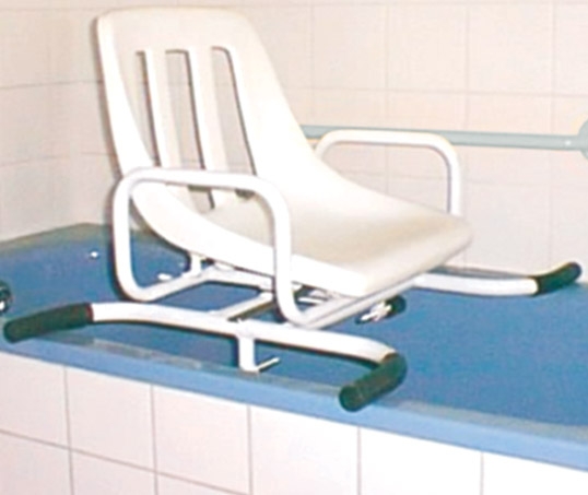 A fürdőkád felső peremére felhelyezhető és a kád belső falához könnyedén biztonságosan rögzíthető. Az oldalán található kar felhúzásával oldal irányba ki- illetve visszafordítható. Megkönnyíti a beteg kád fölé helyezését.