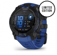 Instinct 3 – 50 mm, AMOLED, fekete, kék/Fekete szilikon szíjjal