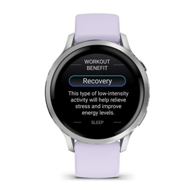 Venu 4 – 41 mm, ezüst, mályvaszínű szilikon szíjjal (228 900 Ft)